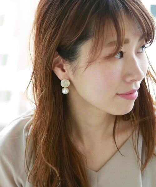 サンドメタルプレートとパールのピアス・イヤリング