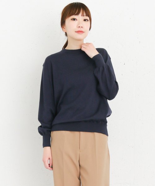 お手入れしやすいウォッシャブル素材を使用したニット。程良いボリュームを含んだ袖のデザインが◎ベーシックなシルエットだからこそ、様々な着こなしに重宝する1着。さらっとした着心地はこれからの季節に最適!オフィススタイルにも幅広く活躍するオフとダークネイビー、ポイント力の高いグリーンからお好きなカラーを選んでみて。