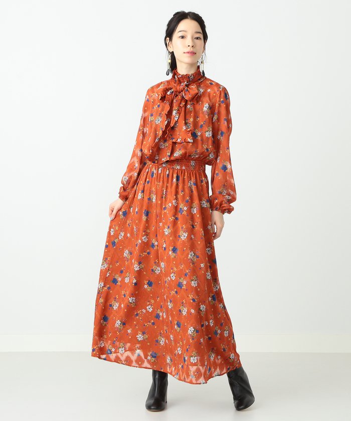 Ray BEAMS / フラワープリント リボンマキシ ワンピース