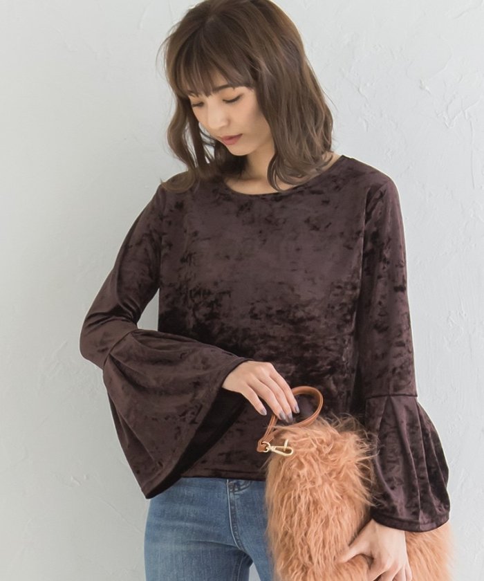 袖フレアベロアTOPS